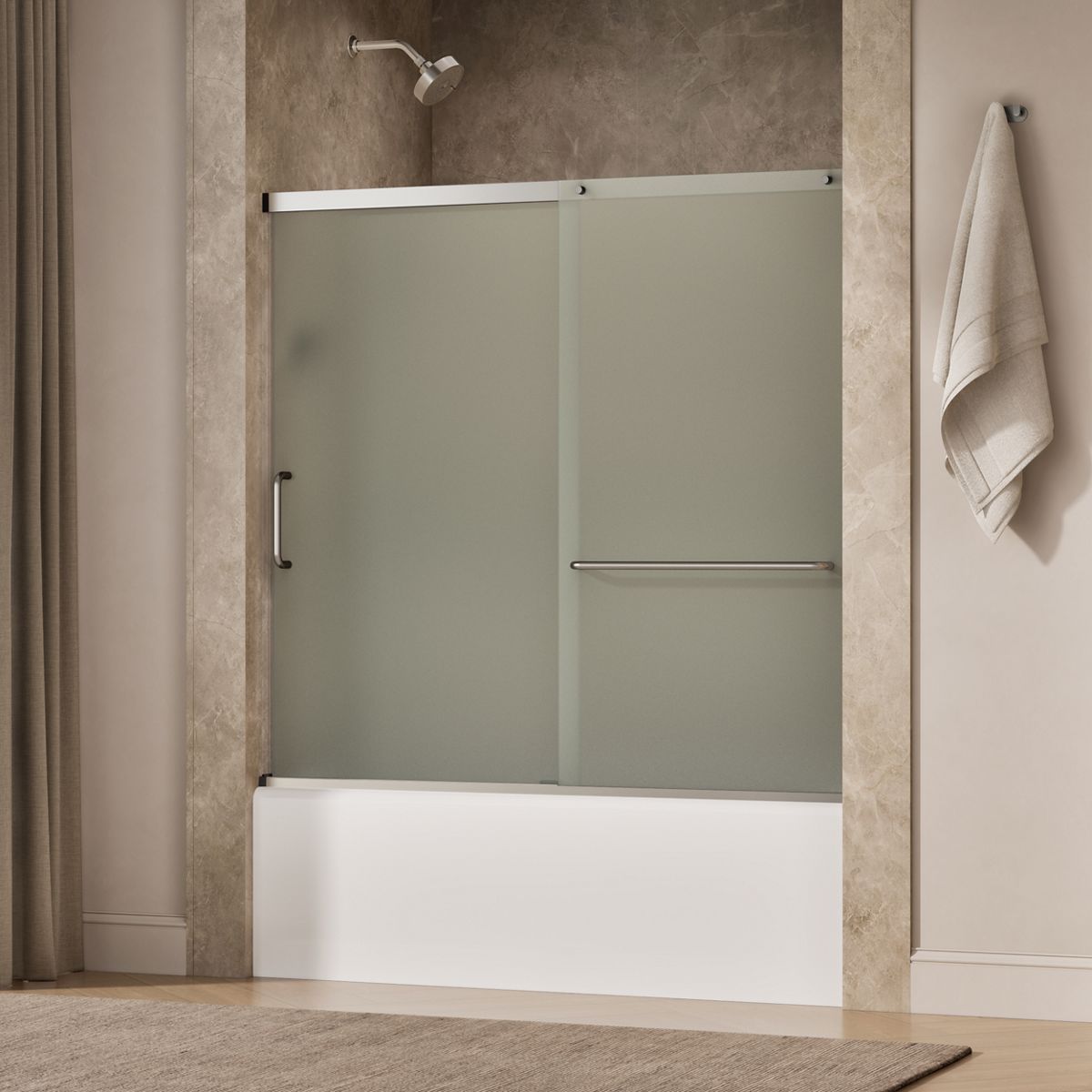 Elate® Sliding bath door, 56-3/4'' H x 56-1/4 - 59-5/8'' W, with 1/4'' thick Frosted glass