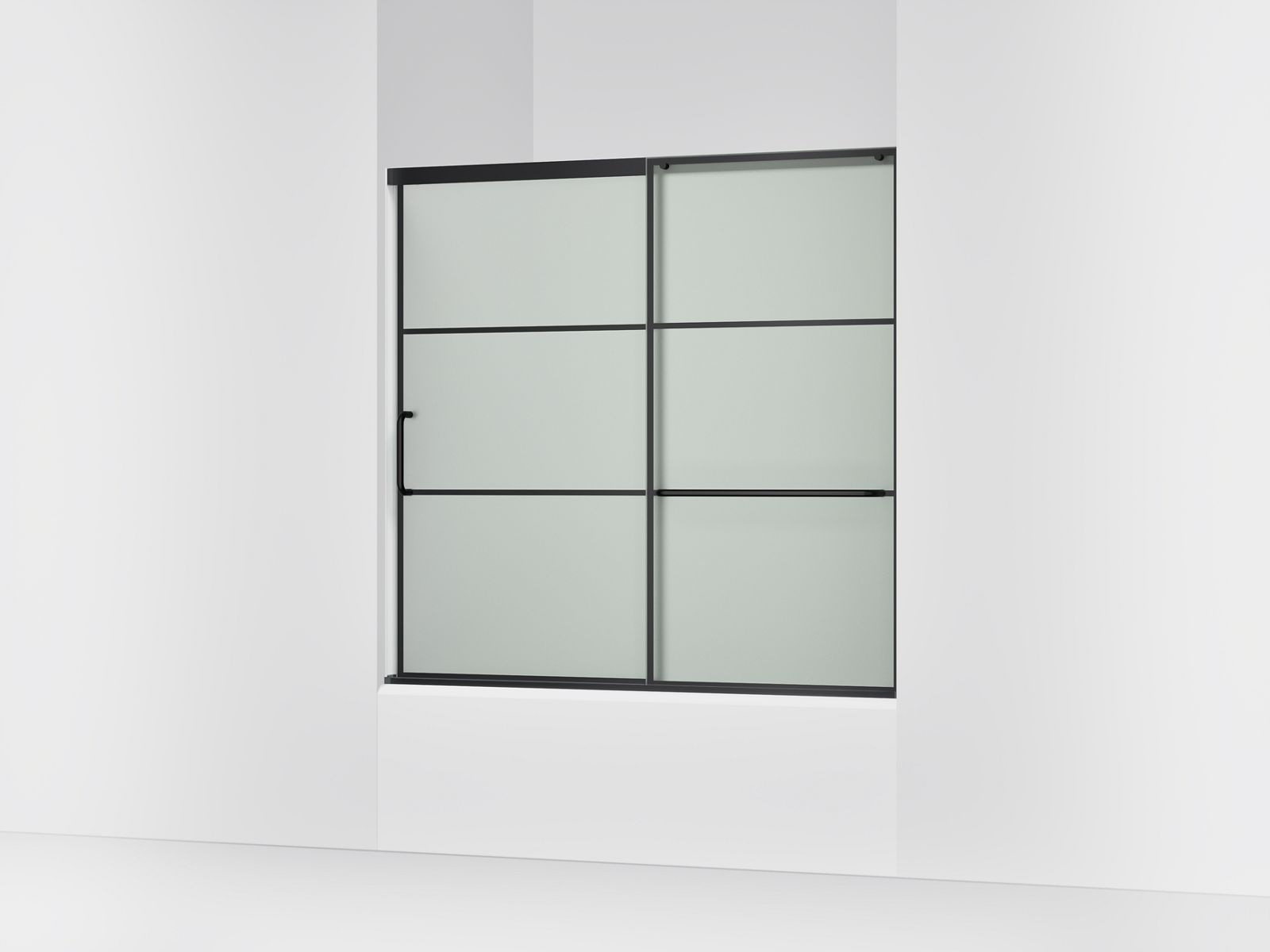 Elate® Sliding bath door, 56-3/4'' H x 56-1/4 - 59-5/8'' W, with 1/4'' thick Frosted glass with rectangular grille pattern