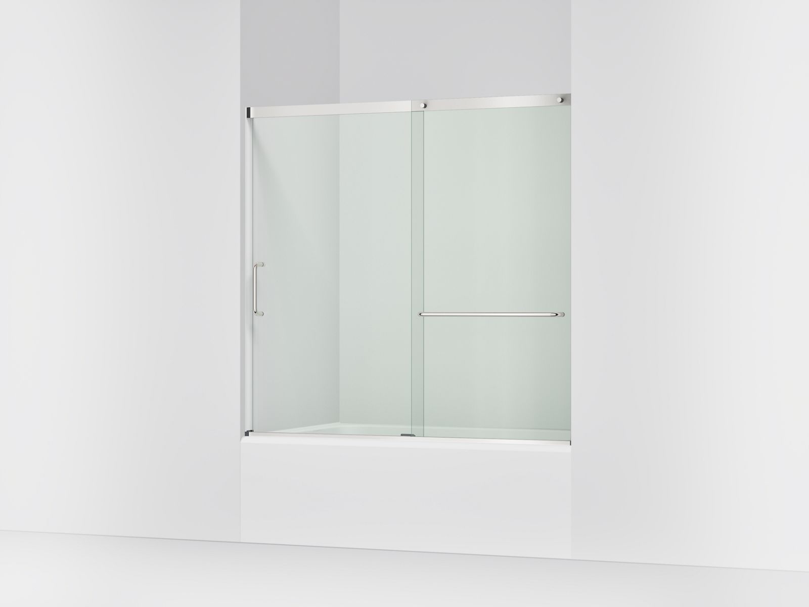With a sleek, minimalist design, oversized rollers for best-in-class sliding action, and low-maintenance CleanCoat®+ glass treatment, the KOHLER® Elate clear sliding bath door combines bold style with delightful functionality. Because Elate can be installed to open from the left or right, it fits easily into your bathroom layout, and 3/8" out-of-plumb adjustability on each side makes the Elate bath door easy to install. A large range of glass types and finishes means there’s an Elate bath door waiting for you.