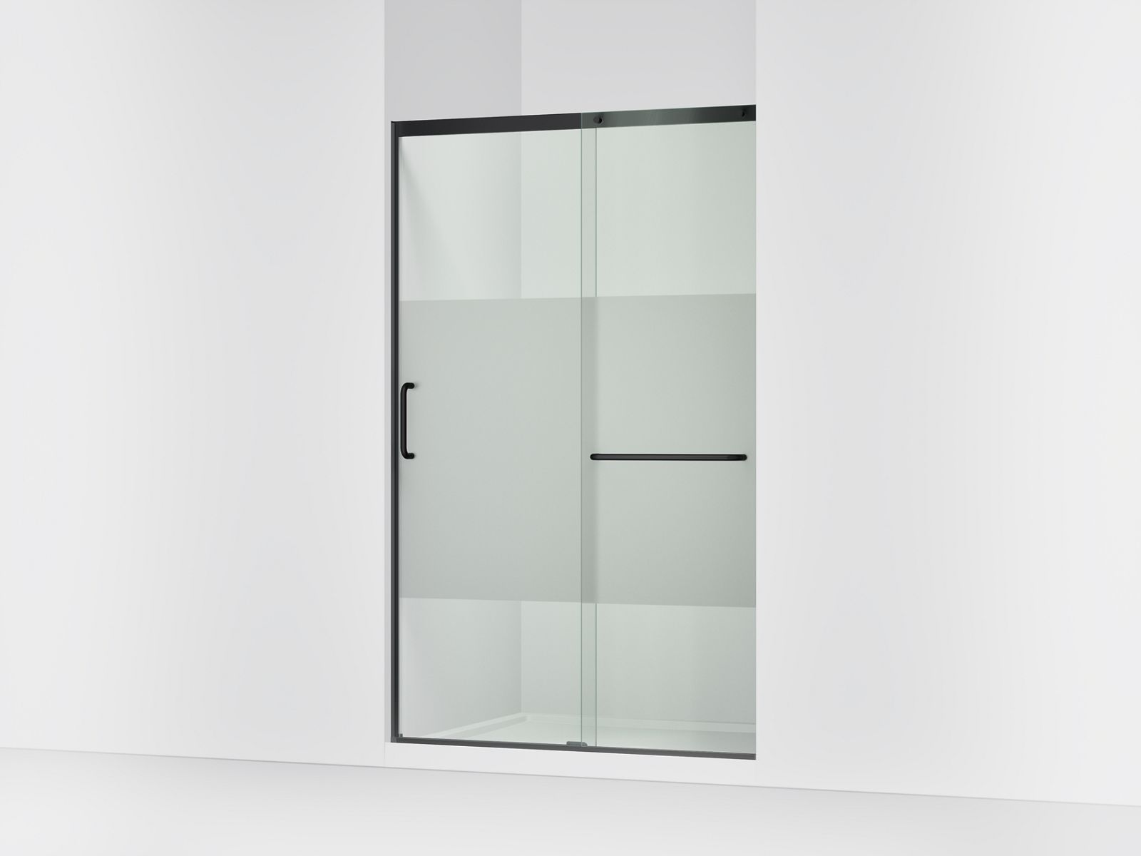 Kohler Elate Sliding shower door, 75-1/2'' H x 44-1/4 - 47-5/8'' W, with heavy 5/16'' thick Crystal Clear glass with privacy band - Matte Black