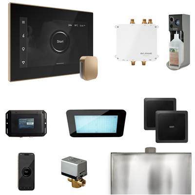 Welcome the ultimate shower experience, the Bliss Package. The bliss package is a curated collection of the finest steam systems and shower experiences available. Anchored by the sophisticated and intuitive iSteamX, along with Chroma, Aroma, and Music Therapy systems, Aroma Steam Head, AutoFlush system, Drip Pan, and now completely blissful with the addition of the innovative SpaH2O electronic shower valve.