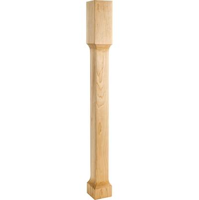 This square post transitions inward with a slight recess for the majority of the post''s length. It comes to rest at the squared base as the post moves outward. This Rubberwood post can complete a furniture piece as a table leg, island end, or stair rail base. The possibilities are nearly infinite. Overall measurements: 3-1/2'' W x 3-1/2'' D x 35-1/2'' H. Photo not species specific